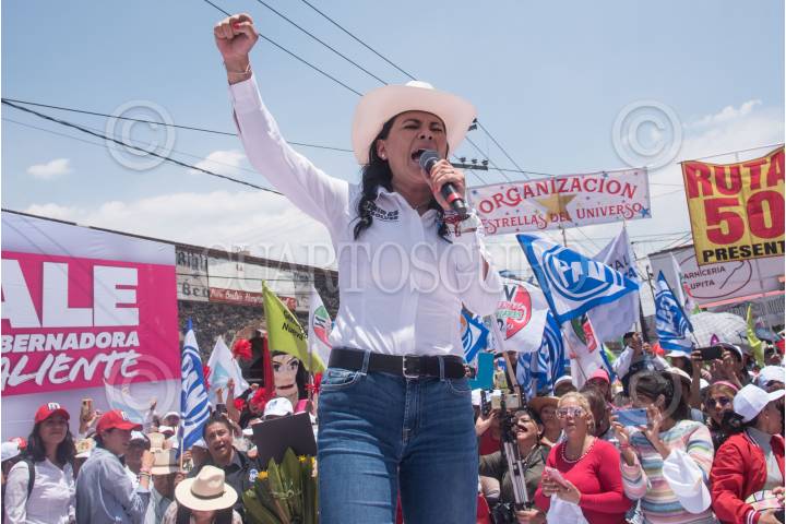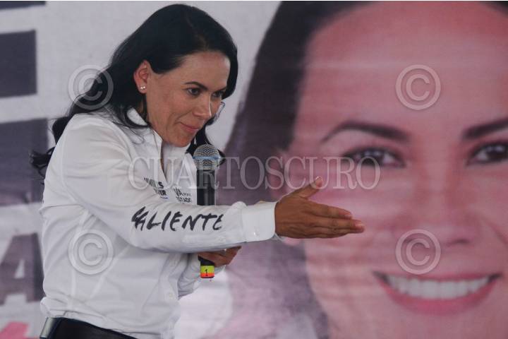 Alejandra del Moral, candidata a la gubernatura del Estado de México, por la coalición “Va por el Estado de México” durante el mitin político que realizó en la explanada del Palacio Municipal de Naucalpan.