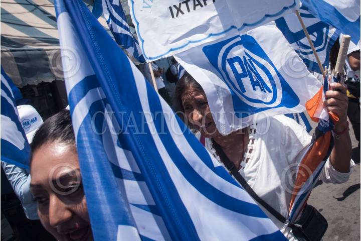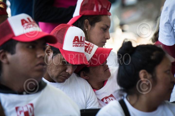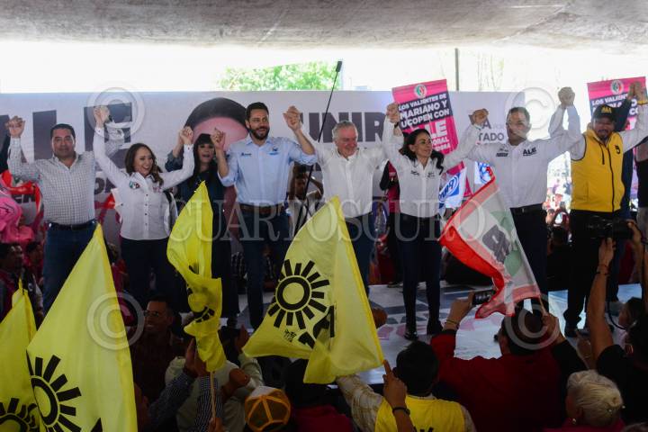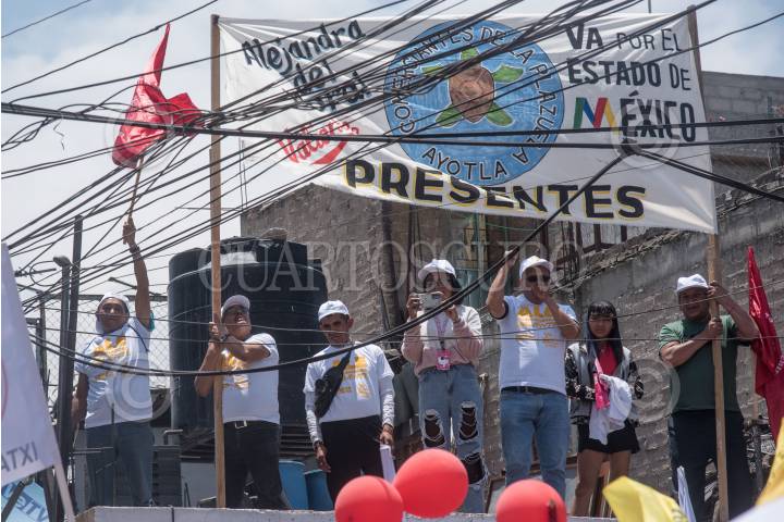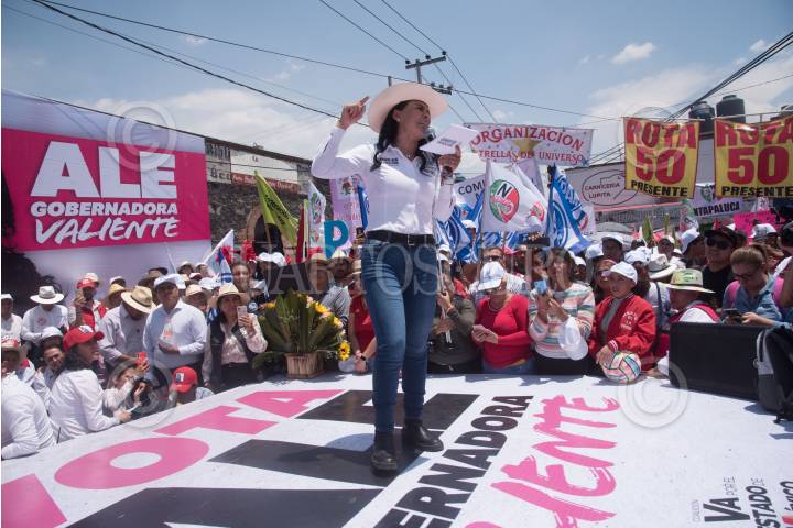 Simpatizantes y vecinos de la colonia Ayotla en Ixtapaluca acuden al mitin político de Alejandra del Moral, candidata a la gubernatura del Estado de México por la coalición PRI, PAN y PRD “Va por el Estado de México”.