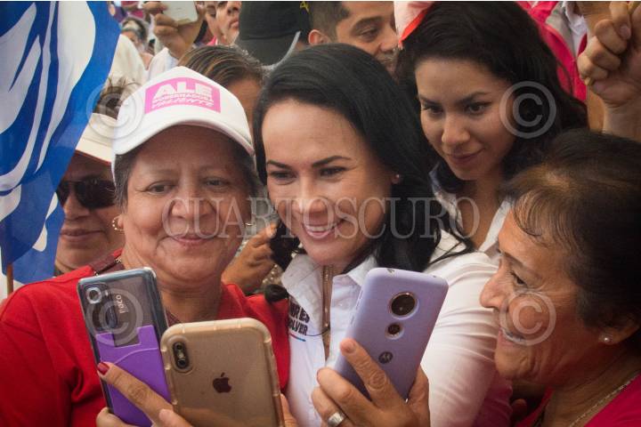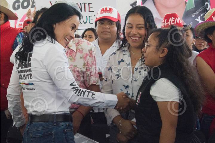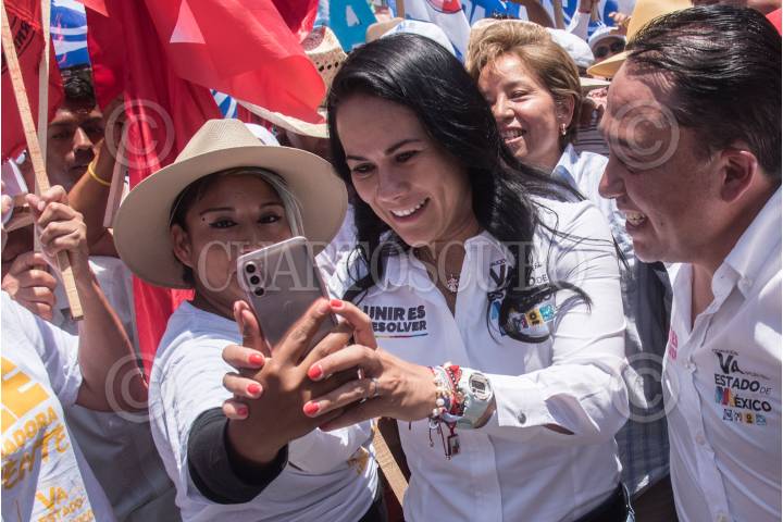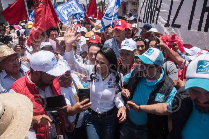 Alejandra del Moral, candidata a la gubernatura del Estado de México por la coalición PRI, PAN y PRD “Va por el Estado de México” durante su gira de campaña junto a simpatizantes y vecinos de la colonia Ayotla en Ixtapaluca.