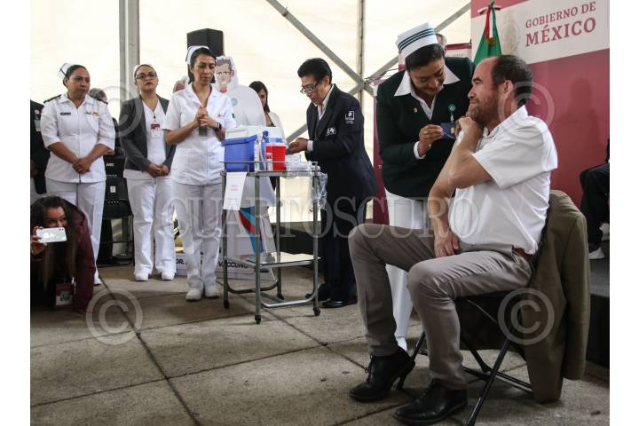 CIUDAD DE MÉXICO, 15OCTUBRE2024.- David Kershenobich, titular de la Secretaría de Salud, durante la aplicación de vacuna contra el COVID-19 la Ceremonia de inicio de la Campaña Nacional de Vacunación para la Temporada Invernal 2024-2025, esto en la explanada del Instituto Nacional de Geriatría (INGer). FOTO: ROGELIO MORALES /CUARTOSCURO.COM