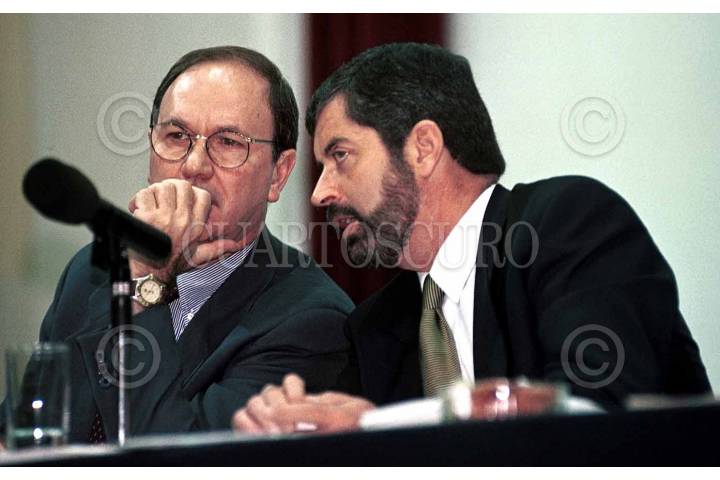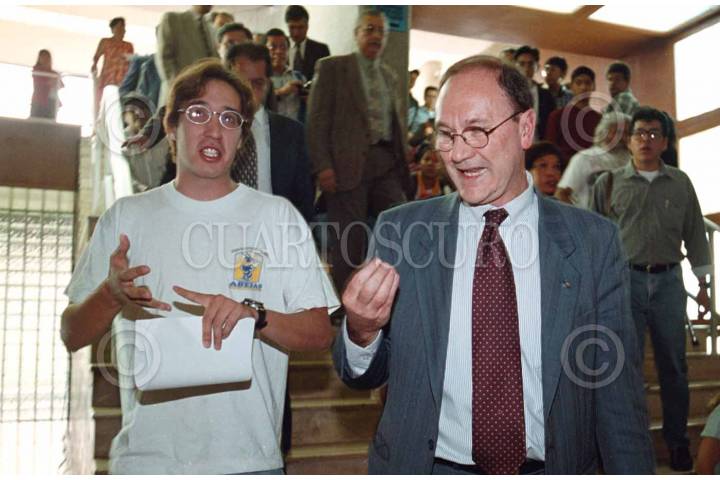 México D.F 05Marzo 2004.- Rene Drucker, coordinador de investigaciones cientificas de la UNAM junto con Juan Ramón de la Fuente, rector de la UNAM, durante la reunión del Consejo Universitario que se llevo a cabo en el Palacio de Medicina. FOTO: Eunice Adorno/CUARTOSCURO.COM