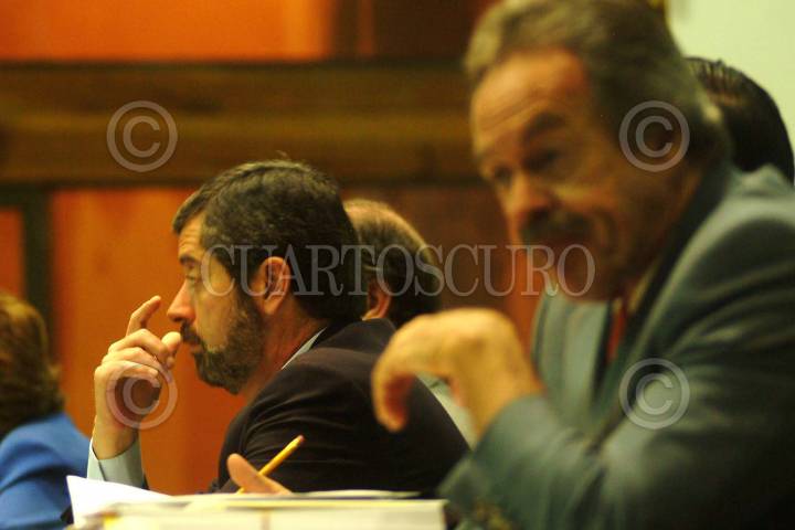 Enrique del Val, secretario académico de la UNAM, escucha al rector Juan Ramón de la Fuente durante la sesión del Consejo Universitario. FOTO: Germán Romero/CUARTOSCURO.COM
