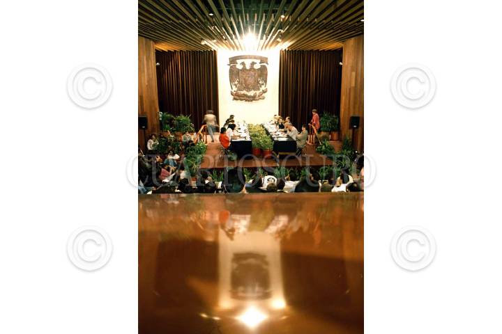 México D.F 05Marzo 2004.- Enrique del Val, secretario general del Consejo Universitario junto con Juan Ramón de la Fuente, rector de la UNAM y Jorge Isla adogado general, durante su reunión con los integrantes del Consejo Universitario de la UNAM, que se llevo en el Palacio de Medicina. FOTO: Eunice Adorno/CUARTOSCURO.COM