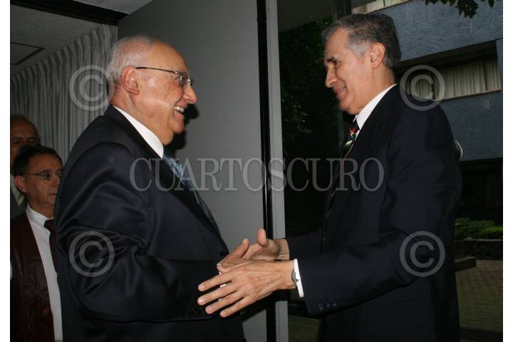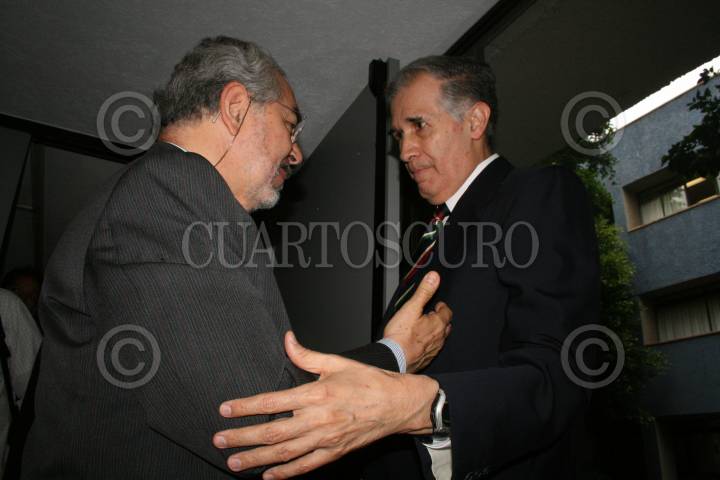 MÉXICO,D,F.,09OCTUBRE2007.- Jorge Carpizo, felicita a Diego Valadez, candidato a la rectoria de la UNAM al termino de la conferencia que ofreció en donde, menciono las razones por los que aspira a la rectoria. FOTO:SASHENKA GUTIERREZ/CUARTOSCURO.COM