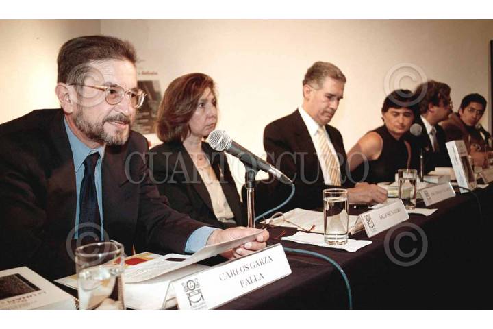 MÉXICO,D,F.,09OCTUBRE2007.- Diego Valadez, candidato a la rectoria de la UNAM durante la conferencia que ofreció en donde, menciono las razones por los que aspira a la rectoria., lo acompañan para refrendarle su apoyo,Héctor García Zamudio Papá del candidato, Sergio García Ramírez Ex procurador, Patricia Cersan Investigadora y Jorge Carpizo FOTO:SASHENKA GUTIERREZ/CUARTOSCURO.COM