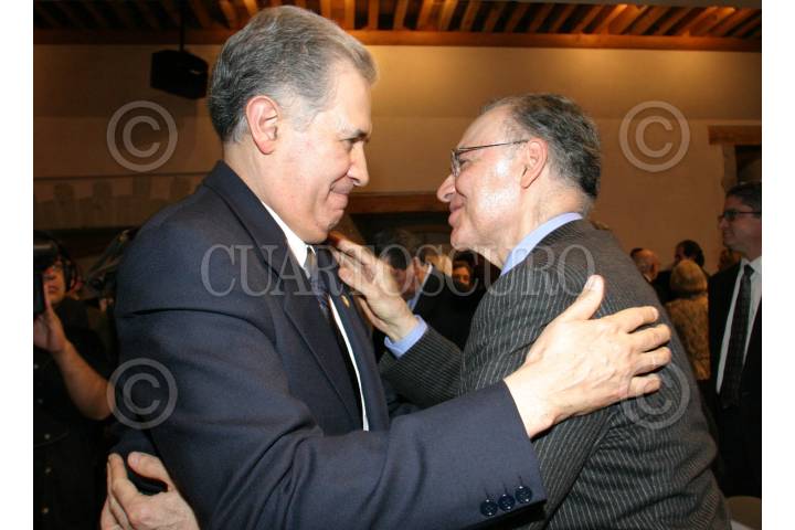 MÉXICO, D.F., 12FEBRERO2007.- El jurista Diego Váladez, es felicitado por Jorge Carpizo, después de la ceremonia que lo acredita como miembro del Colegio Nacional. FOTO: MOISÉS PABLO/CAURTOSCURO.COM