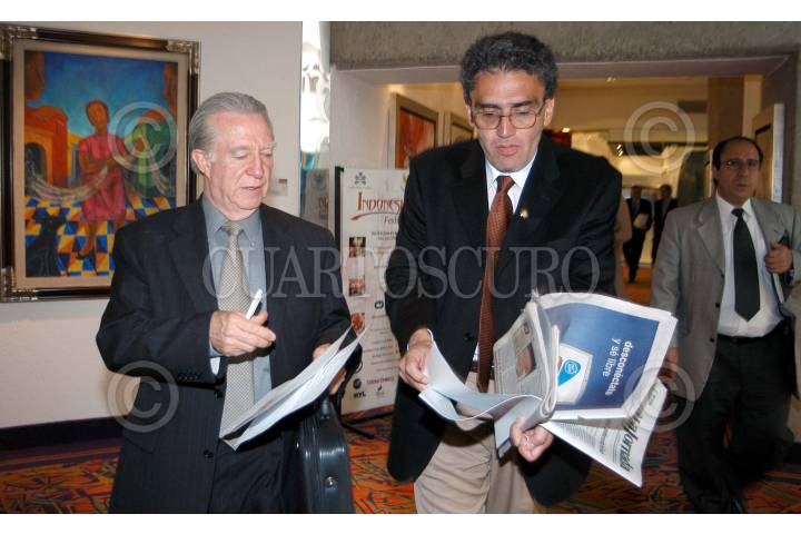 MEXDF 29JUNIO2004.- Guillermo Valasco Arzac y José Antonio Ortega, integrantes del Consejo Ciudadano para la Seguridad Publica, antes de la conferencia de prensa para anunciar los resultados de la marcha silenciosa contra la delincuencia. FOTO: Germán Romero/CUARTOSCURO.COM