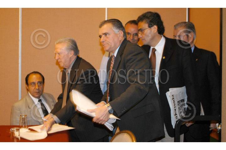 MEXDF 29JUNIO2004.- Guillermo Valasco Arzac, Jorge Espina y José Antonio Ortega, integrantes del Consejo Ciudadano para la Seguridad Publica, antes de la conferencia de prensa para anunciar los resultados de la marcha silenciosa contra la delincuencia. FOTO: Germán Romero/CUARTOSCURO.COM