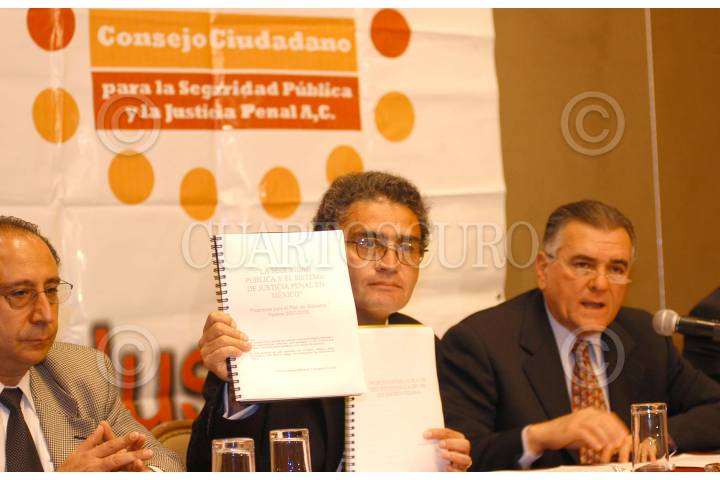 MÉXICO D.F. 29MAYO2006.- Guillermo Válasco, presidente coordinador de APN . Roberto Campa Ciprian, candiadto a la presidencia por el partido Nueva Alianza, y José Antonio Ortega, presidente de ejecutivo de Justicia y PAZ, durante su asistencia al Foro Nacional de Seguridad Jisticia y Paz, donde el candidato acepto el compromiso de seguridad en caso de llegar a la presiedencia FOTO: Guillermo Perea/ CUARTOSCURO.COM