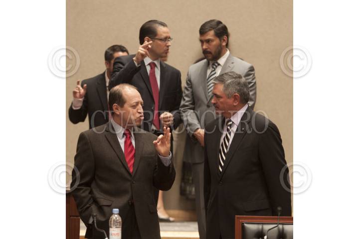MÉXICO, D.F., 11OCTUBRE2011.- Los consejeros Marco Antonio Baños, y Leonardo Váldes Zurita, presidente, durante la sesión extraordinaria del Instituto Federal Electoral. El instituto celebra su vigésimo aniversario de vida. FOTO: MOISÉS PABLO/CUARTOSCURO.COM