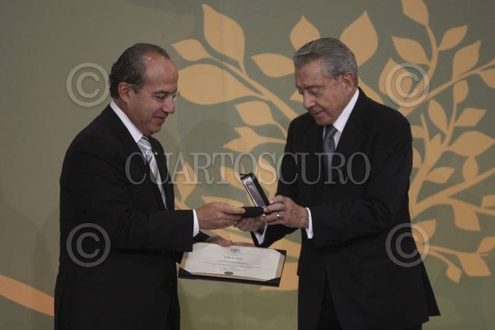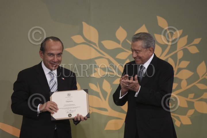 MÉXICO, D.F., 14DICIEMBRE2011.- Felipe Calderón Hinojosa, presidente de México, recibió el premio de ecología y medio ambiente "Miguel Alemán Valdés" 2011 en la residencia oficial de Los Pinos. FOTO: IVÁN STEPHENS/CUARTOSCURO.COM