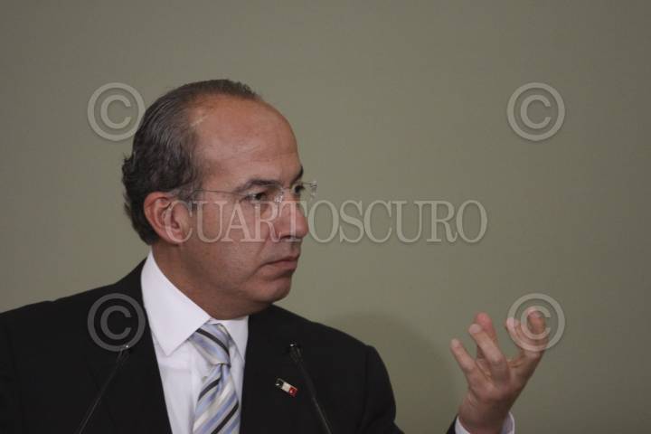 GUAYMAS, SONORA, 08NOVIEMBRE2011.- Felipe Calderón Hinojosa, Presidente de México, encabezó el anuncio del cambio en mercado de gas natural. Firmaron el documento los gobernadores Marco Antonio Adame, gobernador de Morelia, César Horacio Duarte, gobernador de Chihuahua, Guillermo Padres Padres, goberandor sonorense, y Mario López Valdés, gobernador de Sinaloa. FOTO: ALFREDO GUERRERO/CUARTOSCURO.COM