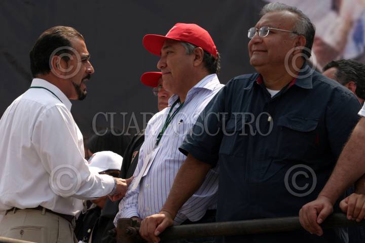 MÉXICO, D.F., 01MAYO2007.- Los dirigentes Francisco Hernández Juárez, Valdemar Gutierrez y Agustín Rodríguez, durante su participación del mitín que organizo la Unión Nacional de Trabajadores en el zócalo con motivo del Día del Trabajo. FOTO: MOISÉS PABLO/CUARTOSCURO.COM