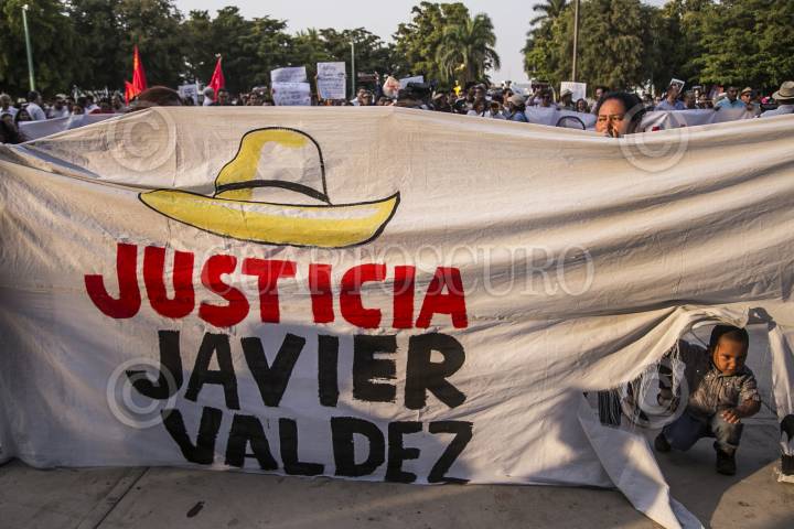 CULIACAN, SINALOA, 15JUNIO2017.- A un mes del asesinato del periodista Javier Valdez, amigos, familiares, colegas y la sociedad en general marcharon de la catedral al palacio de gobierno del Estado para exigir justicia. FOTO: RASHIDE FRIAS /CUARTOSCURO