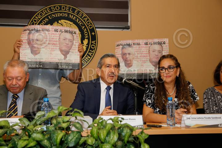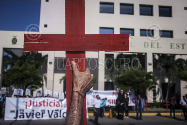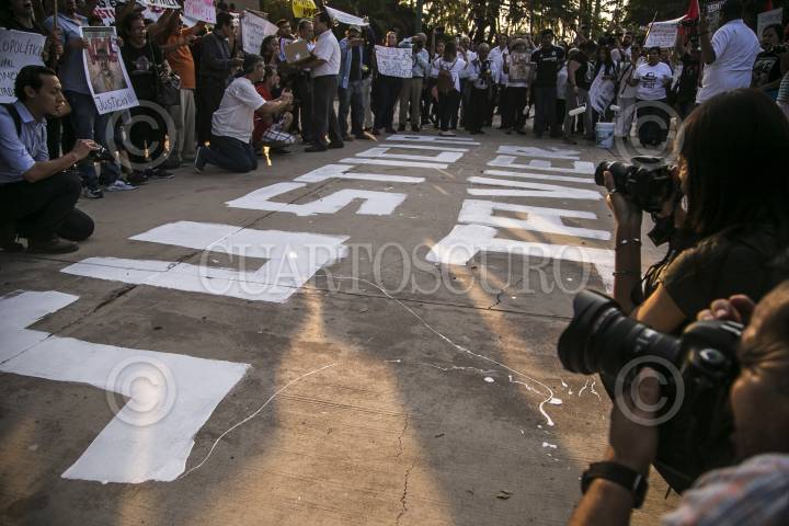 CULIACÁN, SINALOA, 15NOVIEMBRE2017.- Miembros de la sociedad civil realizaron una protesta en el Congres del Estado para exigir justicia por el asesinato del periodista Javier Valdez. FOTO: MARCOS VIZCARRA /CUARTOSCURO.COM