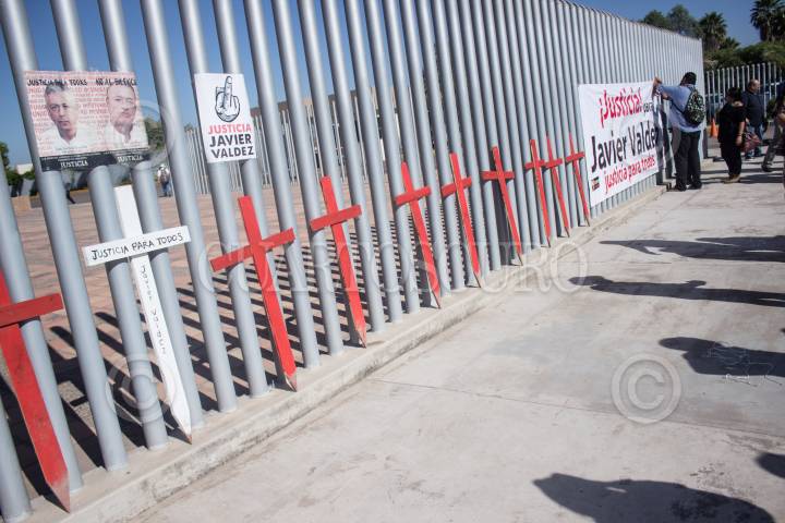 CULIACÁN SINALOA, 15SEPTIEMBRE2017.- A cuatro meses del asesinato de Javier Valdéz periodista Sinaloense, familiares, colegas y amigos realizaron una manifestación en las instalaciones de la Fiscalía General del Estado para exigir Justicia. FOTO: RASHIDE FRIAS /CUARTOSCURO.COM