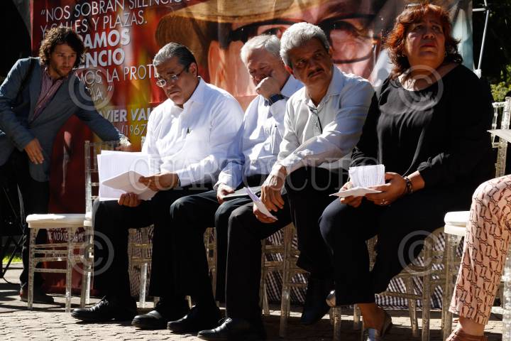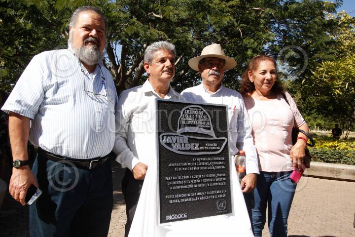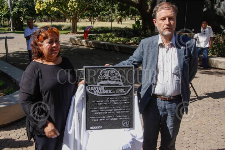 CULIACÁN, SINALOA, 24NOVIEMBRE2017.- Se rindió homenaje al periodista asesinado el pasado 15 de mayo, en Culiacán Javier Valdez Cárdenas. en el evento estuvo presente Jan Jarab, Alto Comisionado de Derechos Humanos de la ONU, quien exigió la aclaración del caso. La ceremonia fue encabezada por Griselda Triana, viuda de Valdez, Ismael Bojorquez, Director de RioDoce y Giancarlo Summa del Centro de Información de Naciones Unidas. FOTO: MARCOS VIZCARRA/ CUARTOSCURO.COM