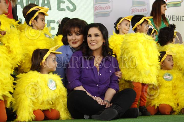 MÉXICO, D.F., 07MARZO2013.- Las actrices Angélica Vale y Angélica María acudieron a la escuela Primaria Amado Nervo a premiar el concurso ¿Por qué mamá es insustituible? de la campaña realizada por la empresa Knorr. FOTO: IVÁN STEPHENS /CUARTOSCURO.COM