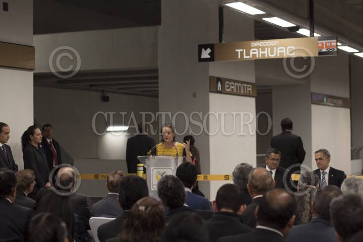 MÉXICO, D.F., 14FEBRERO2013.- María Fernanda Campa Uranga, hija de Valentín Campa, en la ceremonia en la cual fue bautizado un convoy del metro con el nombre del luchador social "Valentín Campa", de la Línea 12 del Metro. FOTO: MOISÉS PABLO /CUARTOSCURO.COM