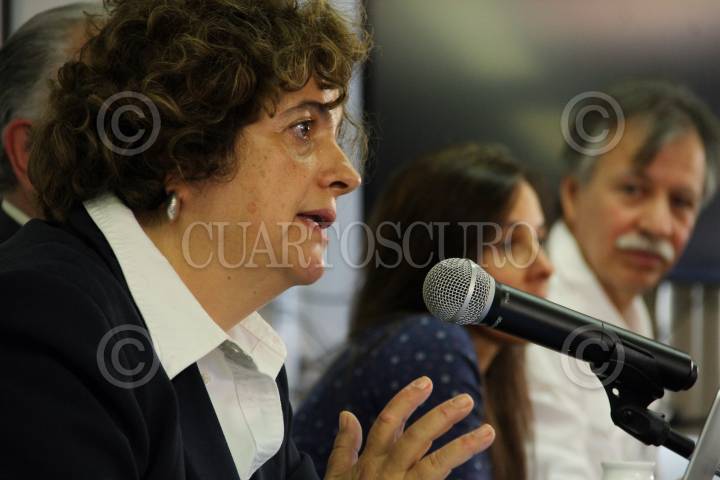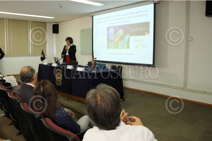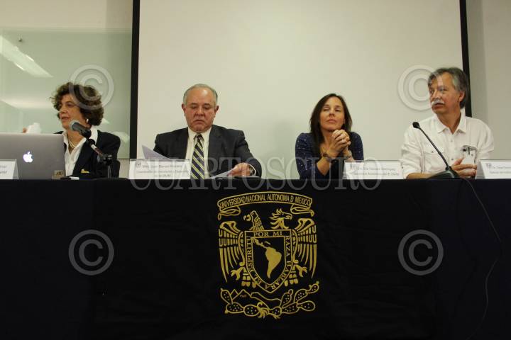 MÉXICO, D.F., 25JUNIO2015.- Una investigación de 15 años llevo a la doctora Valeria Souza Saldívar, investigadora del Instituto de Ecología de la UNAM a desarrollar una membrana capaz de detectar de manera simultánea mas de 180 bacterias, causantes principalmente de enfermedades intestinales en niños, las cuales matan a más de medio millón al año. La idea de esta membrana tan versátil no solo es atacar las enfermedades en pacientes, si no también atacar el origen de estas, que se encuentra principalmente en el agua. La empresa Encore Biotechnology compro la patente a la UNAM. Presidieron el evento: Dra. Valeria Souza Saldívar, investigadora del IE UNAM; Mtro. Juan Manuel Romero, coordinador de innovación y desarrollo de la UNAM; Dra. Ella Vázquez Domínguez, Secretaria académica del IE UNAM; Dr. Cesar Domínguez Pérez Tejada, director del IE UNAM. FOTO: ISABEL MATEOS /CUARTOSCURO.COM