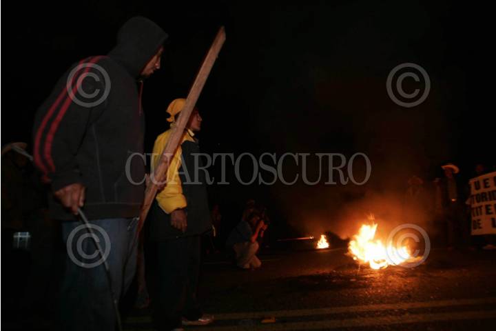 OAXACA, OAXACA 01AGOSTO2008.-Habitantes de San Sebastián Teitepac, Tlacolula, bloquearon la noche de este jueves la autopista Oaxaca-Mitla para exigir la destitucion de su presidente municipal, Constantino Valeriano, a quien señalan de corrupto FOTO: MAX NÙÑEZ/CUARTOSCURO.COM