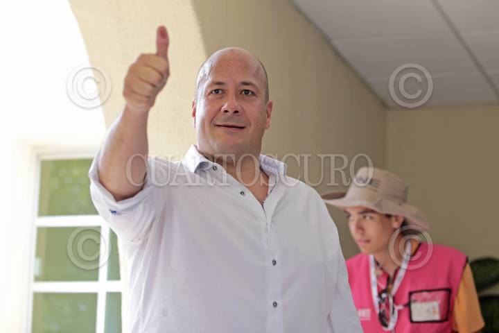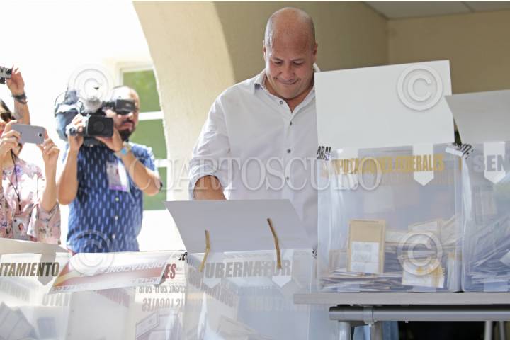 GUADALAJARA, JALISCO, 01JULIO2018.- Enrique Alfaro Ramirez candidato a la gubernatura del estado de Jalisco por el Partido Movimiento Ciudadano, acudió pasado el medio día a emitir su voto a la casilla ubicada en Av. de La Paz esquina con la calle Pedro Calderón de la Barca en la colonia Arcos Vallarta. FOTO: FERNANDO CARRANZA GARCIA / CUARTOSCURO.COM