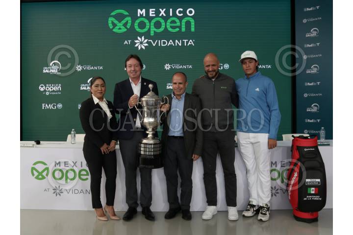 Norma Suárez, directora de operación Hotelera de Grupo Vidanta; Fernando Lemmen Meyer, presidente de la Federación Mexicana de Golf; Rodrigo Suárez Gilly, director de México Open at Vidanta; José Alonso, director de operaciones Grupo Vidanta y Santiago de la Fuente, Subcampeon de Latín América Amateur Championship durante la conferencia que ofrecieron para dar detalles del México Open at Vidanta que se llevará a cabo a partir del 28 de Marzo en Acapulco.