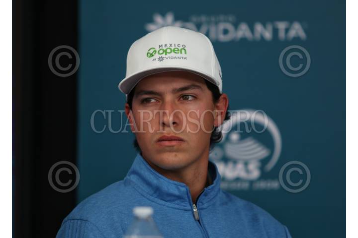 Santiago de la Fuente, Subcampeon de Latín América Amateur Championship durante la conferencia que ofrecieron para dar detalles del México Open at Vidanta que se llevará a cabo a partir del 28 de Marzo en Acapulco.