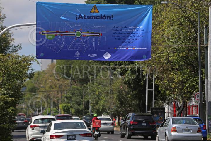 Una lona con información sobre los cierres viales es visible por avenida Vallarta.
