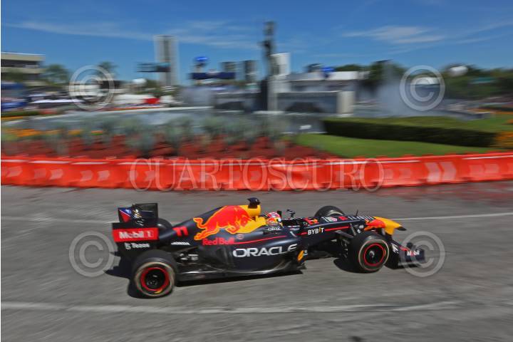 El piloto Tapatío de Formula 1Checo Pérez, durante su exhibición en su automóvil RV7 en las inmediaciones de la Glorieta Minerva, en evento denominado “Red Bull Show Run 2022.