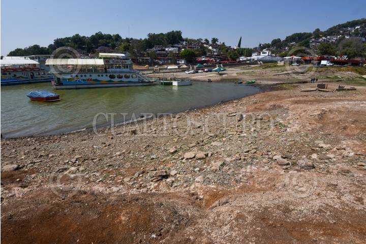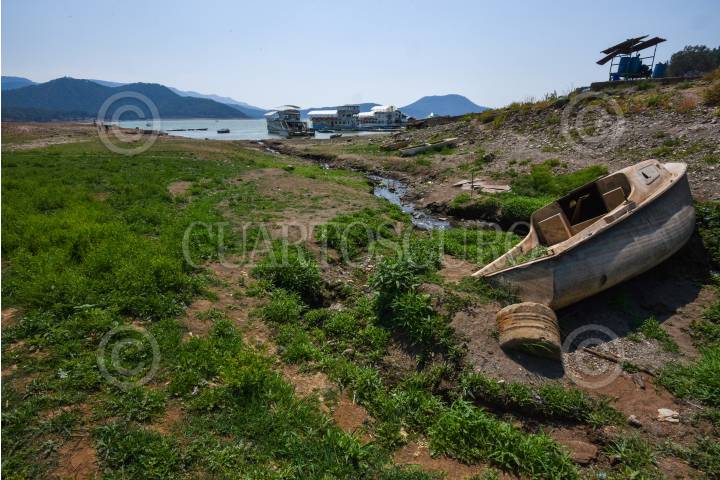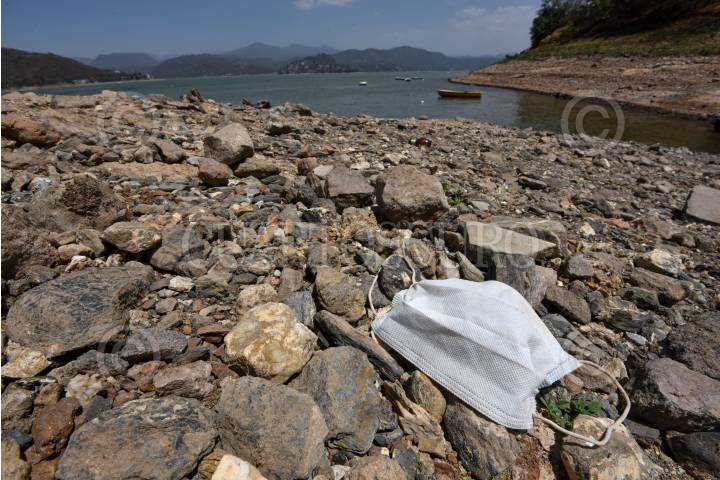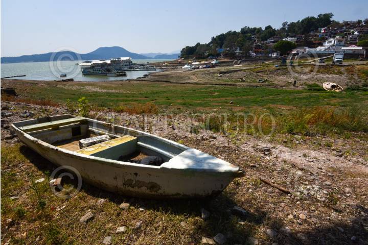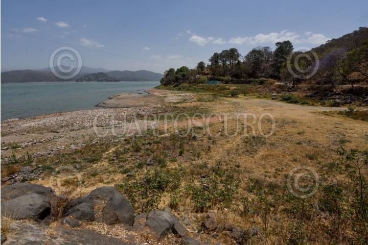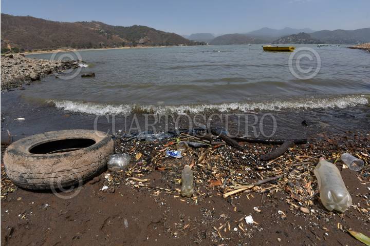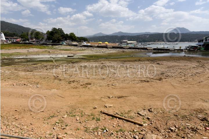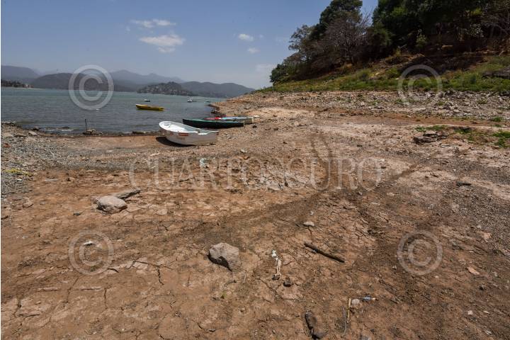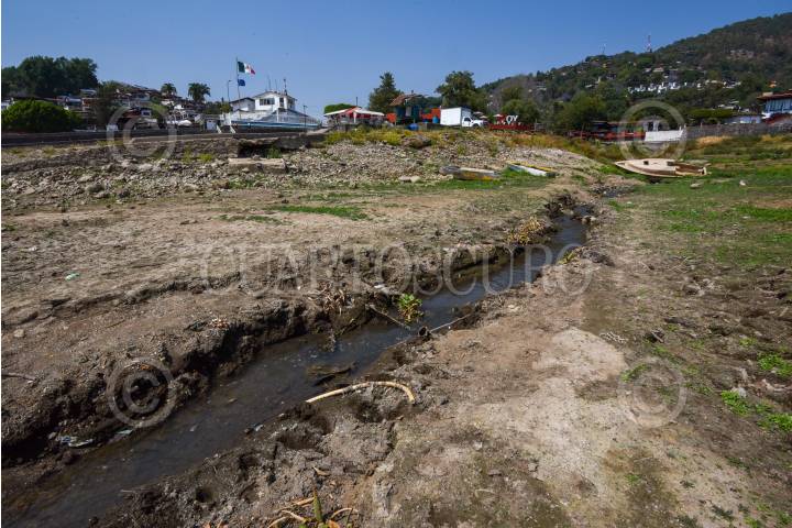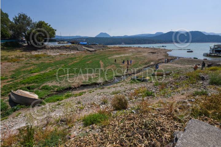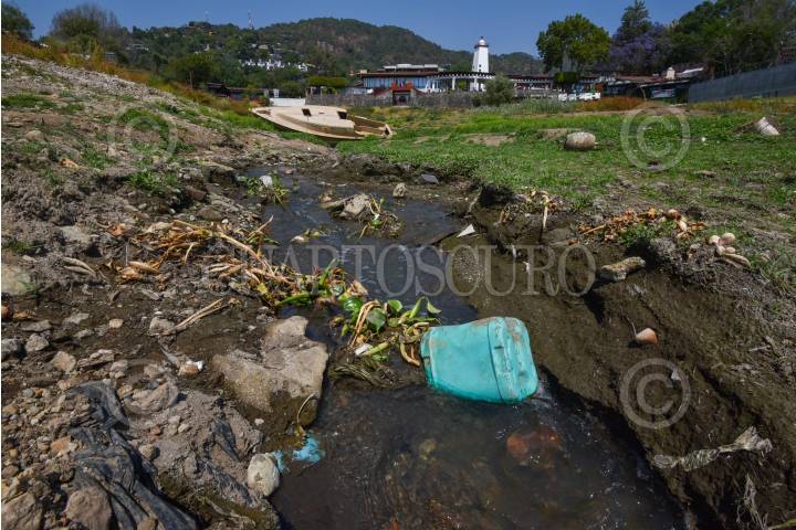 El bajo nivel de agua en la Presa de Valle de Bravo ha dejado al descubierto drenajes que desembocan en este cuerpo de agua.