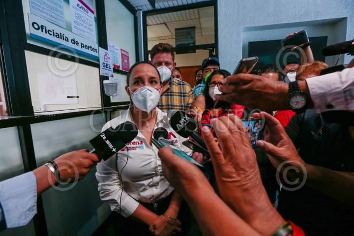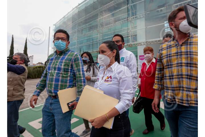 Michelle Núñez Ponce, abanderada de la coalición Juntos Haremos Historia MORENA-PT-Panal a la Presidencia Municipal de Valle de Bravo presentó una denuncia ante el IEEM para solicitar garantías para una elección limpia.