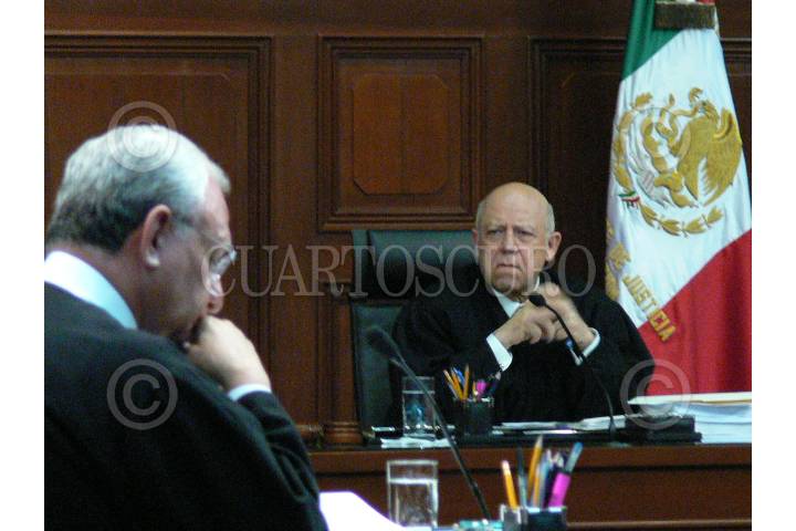 MÉXICO, D.F., 29SEPTIEMBRE2011.- Los ministros Sergio Valls Hernández, y Luis Aguilar Morales, fueron de los que votaron a favor del proyecto que pretendía invalidar la reforam sobre la protección a la vida desde la concepción de la Constitución de San Luis Potosí. Ante una mayoría insuficiente de siete ministros que se pronunciaron por invalidar el artículo 16 de la Constitución potosina, la acción de inconstitucionalidad promovida por una minoría de la legislatura local fue desestimada. La minoría integrada por los ministros Jorge Pardo, Guillermo Ortiz, Salvador Aguirre y Margarita Luna, privó al bloque mayoritario del octavo voto necesario para una declaración de invalidez, como sucedió en el caso de Baja California. FOTO: MOISÉS PABLO/CUARTOSCURO.COM