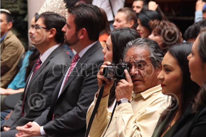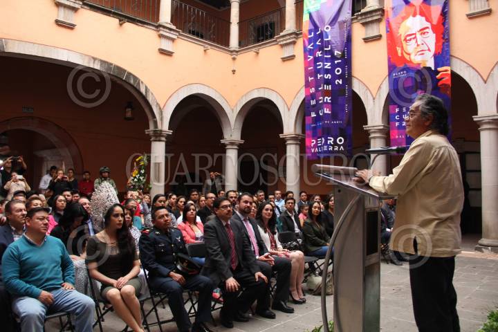 FRESNILLO, ZACATECAS, 03ABRIL2017.- En el patio de la Presidencia Municipal de Fresnillo fue presentado el programa del Festival Cultural de este municipio, que en su edición de 2017 estará dedicado a Pedro Valtierra. Aquí, el fotoperiodista habló de su quehacer en la fotografía y de sus inicios en el oficio. FOTO: CUARTOSCURO.COM