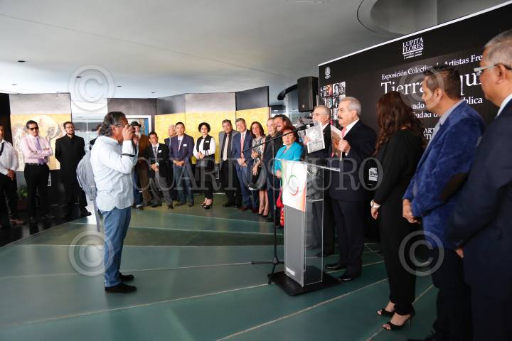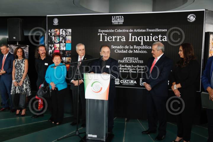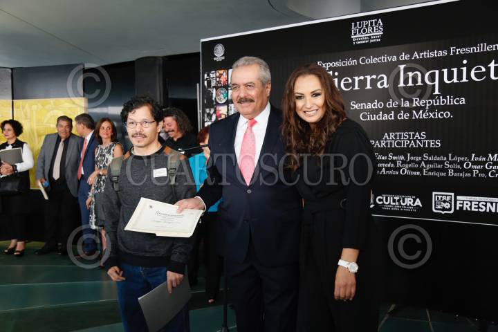 CIUDAD DE MÉXICO, 17ABRIL2018.- Se llevó a cabo la inauguración de la exposición colectiva de artistas fresnillenses "Tierra Inquieta" en el senado de la República. El evento estuvo encabezado por José Olvera Acevedo, senador de Fresnillo del PRI. Algunos de los artistas que participaron en la expo son Pedro Valtierra, director de la agencia y revista Cuartoscuro, Jorge Saldaña, Rogelio Aguilar, entre otros. FOTO: CUARTOSCURO.COM