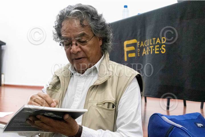 CUERNAVACA, MORELOS, 29OCTUBRE2019.- El maestro Pedro Valtierra firma algunas revistas al finalizar la presentación del número 157 de la revista Cuartoscuro en la facultad de Artes de la Universidad Autónoma del Estado de Morelos. FOTO: JUANJO ENRIQUE /CUARTOSCURO.COM