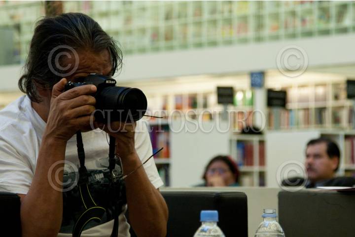 MÉXICO, D.F., 02JUNIO2011.- Pedro Valtierra, fotoperiodista mexicano, fue invitado en la presentación del libro "Autoretratos del Fotoperiodismo Mexicano, 25 Testimonios"; de Luis Jorge Gallegos, fotoperiodista. Ésto se desarrolló en la libreria Rosario Castellanos del Fondo de CUltura Económica. FOTO: MISAEL VALTIERRACUARTOSCURO.COM