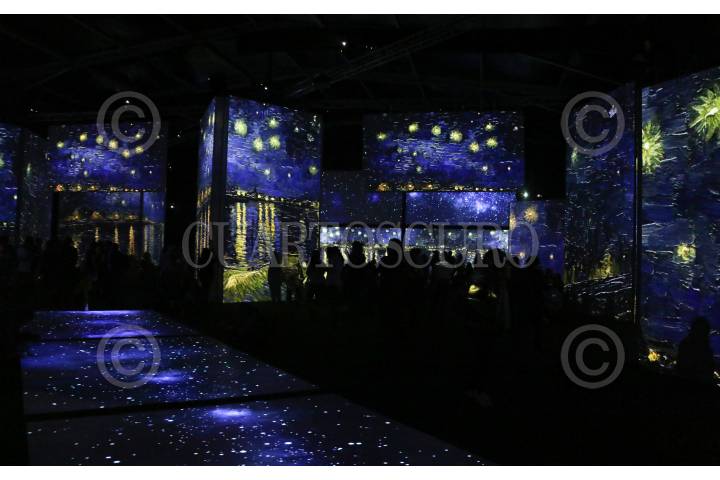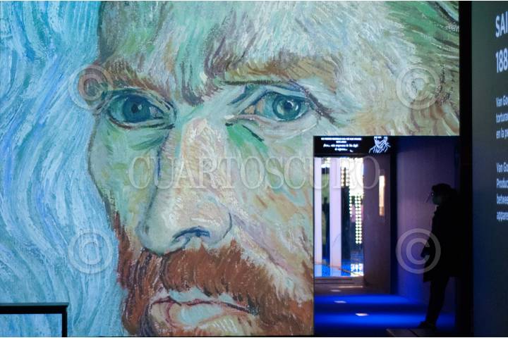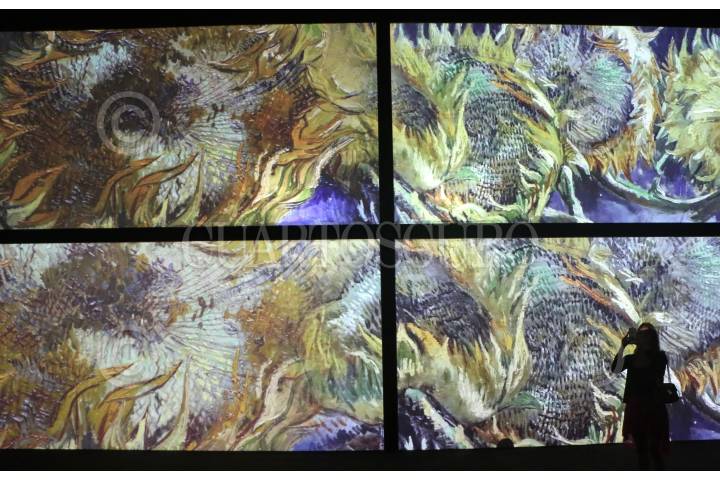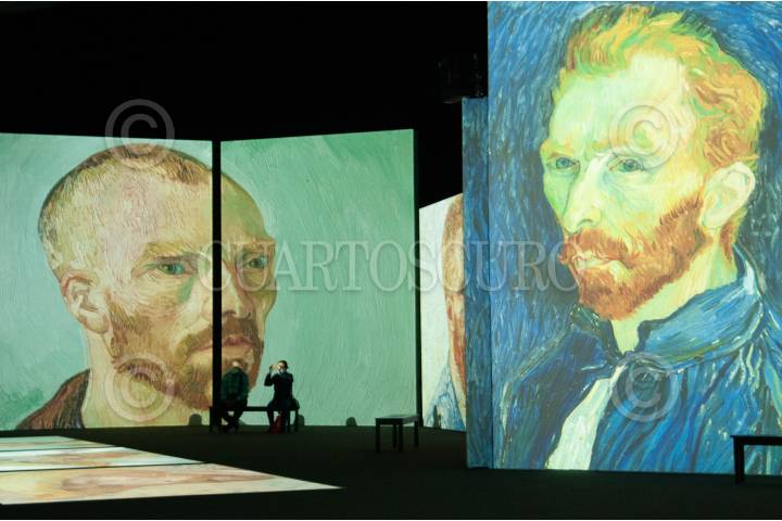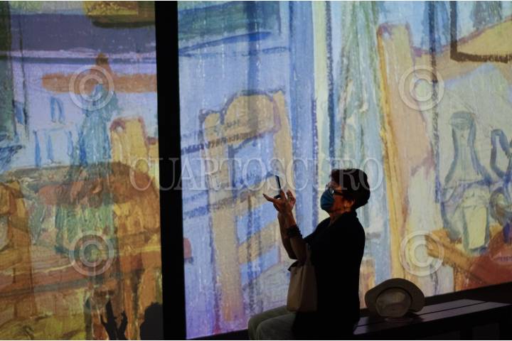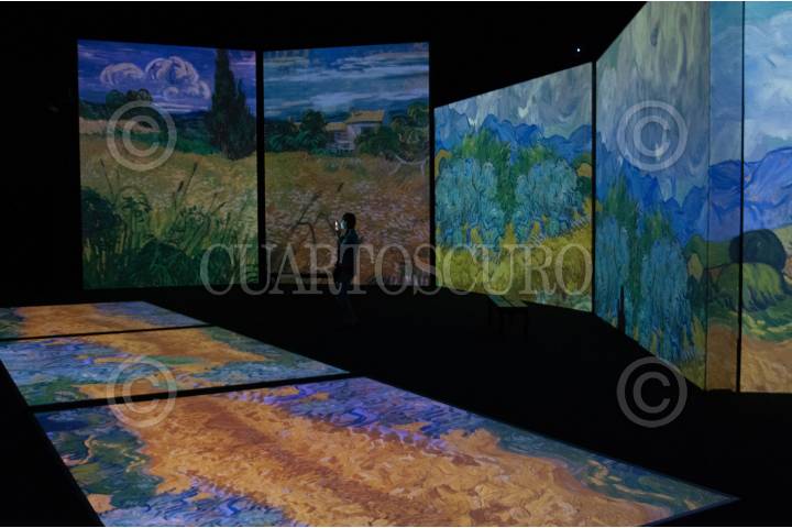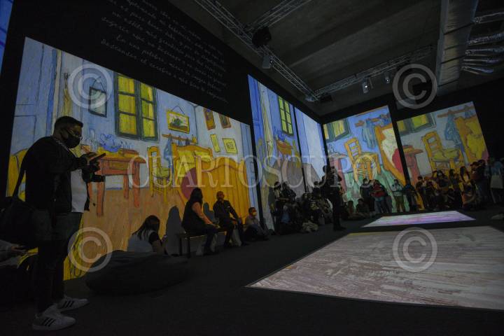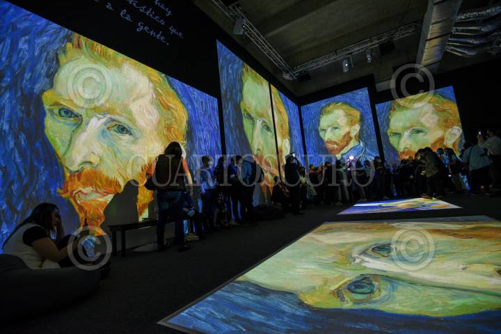 Una vigilante de la exposición Van Gogh Alive, espera a la salida de una sala.