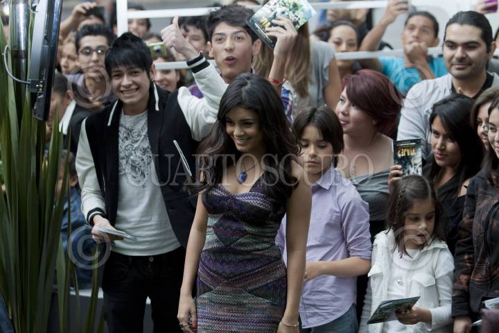 MÉXICO, D.F., 28ENERO2012.- La actriz Vanessa Hudgens durante la alfombra roja de la película Viaje2 La Isla Misteriosa que se realizó en un cine del Paseo de la Reforma. FOTO: RODOLFO ANGULO/CUARTOSCURO.COM