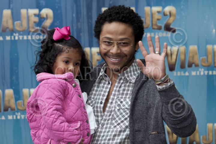 MÉXICO, D.F., 28ENERO2012.- El cantante Kalimba acompañado de su sobrina, durante la alfombra roja de la película Viaje2 La Isla Misteriosa que se realizó en un cine del Paseo de la Reforma. FOTO: RODOLFO ANGULO/CUARTOSCURO.COM
