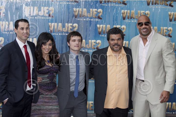 MÉXICO, D.F. 27ENERO2012.- El director, Brad Peyton y los actores, Luis Guzmán, Josh Hutcherson, Vanessa Hudgens y Dwayne “The Rock” Johnson protagonizan la cinta "Viaje a la Isla Misteriosa 2" , que se estrena el día de mañana en esta ciudad. FOTO: FRANCISCO RODRÍGUEZ/CUARTOSCURO.COM