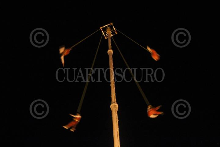 PAPANTLA, VERACRUZ, 21JUNIO2011.- Durante la noche se realizó un último vuelo de agradecimiento durante este cuarto Encuientro Internacional de Voladores. FOTO: ENRIQUE ORDÓÑEZ/CUARTOSCURO.COM