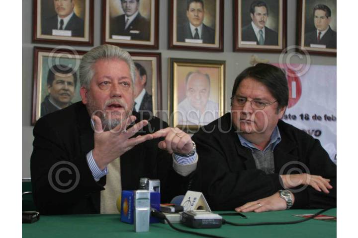 ZACATECAS, ZACATECAS, 01FEBRERO2007.- Leodegario Varela González, Presidente del PRI Estatal y Alejandro Gárate Uruchurtu, candidato a la presidencia del CEN del PRI, ofrecieron una conferecia de prensa en su sede local. FOTO: CUARTOSCURO.COM