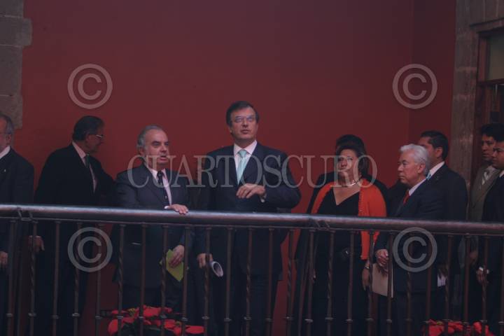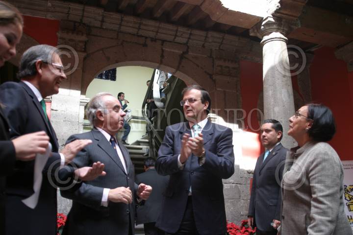 MÉXICO D.F., 09DICIEMBRE2008.- Marcelo Ebrard Jefede Gobierno del Distrito Federal, acompañado de José Varela Ortega, Javier García Diego y la autoridad del centro Historico Alejandra Moreno Toscano durante la inaguración del Instituto Universitario de Investigación Ortega y Gasset México. FOTO: SÁSHENKA GUTIÉRREZ/CUARTOSCURO.COM