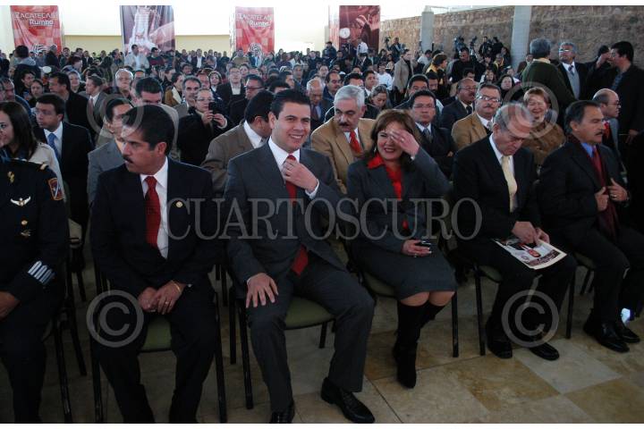 GUADALUPE, ZACATECAS, 09FEBRERO2011.- El gobernador Miguel Alonso Reyes y la magistrada Leonor Varela Parga, durante la presentación del Programa Estatal de Seguridad Pública. Asimismo, hizo una serie de anuncios para acompañar y reforzar las acciones, entre los que destaca el acuerdo de coordinación entre la Secretaría de la Defensa Nacional (Sedena) y el Gobierno del Estado, para que se sumen más efectivos al cuidado del territorio estatal. FOTO: ADOLFO VALTIERRA/CUARTOSCURO.COM