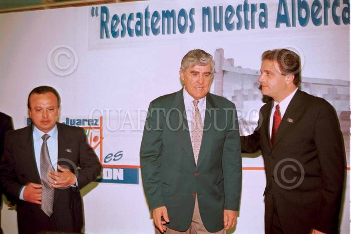 Nelson Vargas presidente de la CONADE y José Espina delegado de la Benito Juárez, en la reapertura de la Alberca Olimpica, después de que permanecio cerrada varios meses. FOTO: Susana Navarrete/CUARTOSCURO.COM
