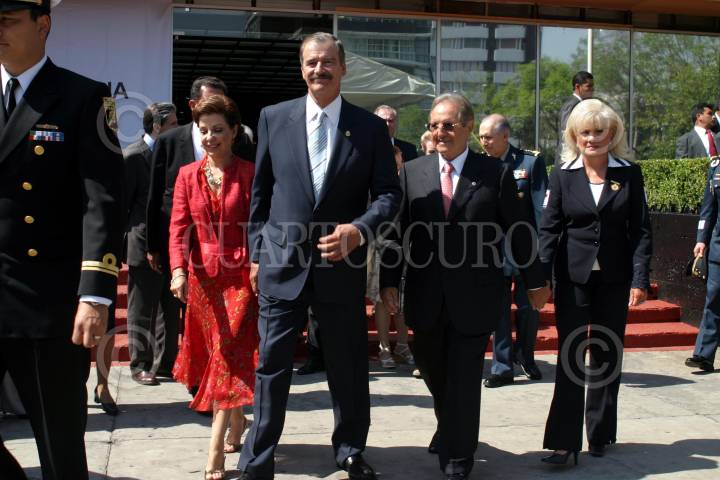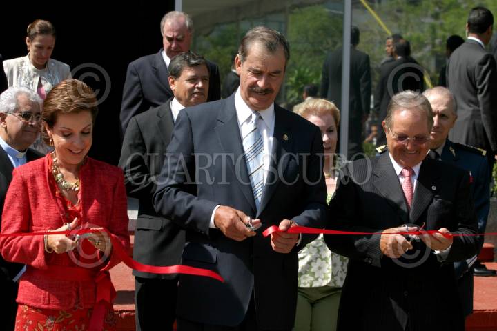 MEXICO, D.F., 24ABRIL2006.- María de los Angeles Aldir de Vazquez Raña, Olegario Vazque Raña, presidente de la Cruz Roja, Vicente Fox, presidente de la República, Marta Sahagún, esposa del presidente y Gerardo Clemente Vega, secretario de la Defensa, durante la inauguración de las remodelaciones del area de terapia intensiva de la Cruz Roja ubicada en Polanco. FOTO: Moisés Pablo/CUARTOSCURO.COM