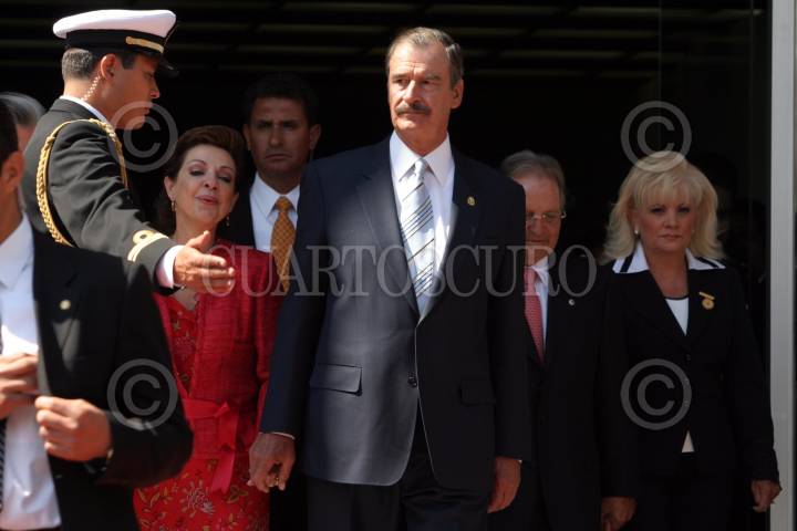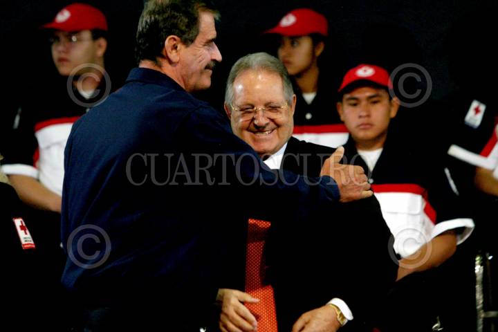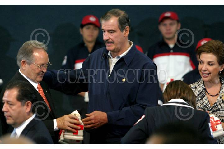 MEXICO, D.F., 27MARZO2006.- Vicente Fox, Presidente de la República y Olegario Vázque Raña, presidente del Comite de la Cruz Roja, pusieron en marcha la colecta anual de la Cruz Roja, en ceremonia realizada en la residencia de los Pinos. FOTO: Moisés Pablo/CUARTOSCURO.COM