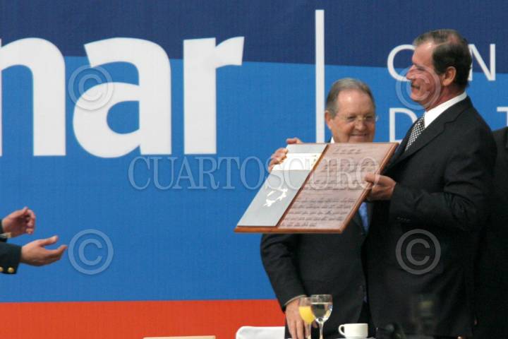 MÉXICO, D.F., 27NOVIEMBRE2006.- Vicente Fox Quesada, Presidente de la República y Olegario Vazque Raña, empresario, durante la ceremonia de inauguración del Centro Nacional de Alto Rendimiento, que se ubica en los terrenos de la Magdalena Mixihuaca. FOTO: MOISÉS PABLO/CUARTOSCURO.COM