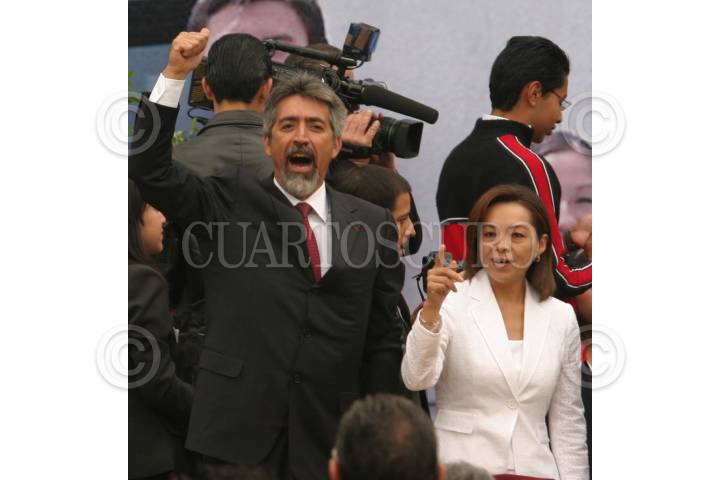 MÉXICO, D.F., 12ENERO2012.- La activista Isabel Miranda de Wallace fue destapada como candidata panista a la Jefatura de Gobierno por el PAN. En la imagen la acompañan Santiago Creel, Ernesto Cordero Arroyo y Josefina Vázque Mota. Miranda señalo que su elección no se debe a su amistad con el Presidente de la República. FOTO: MOISÉS PABLO/CUARTOSCURO.COM